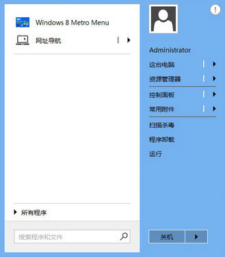 暴点菜单是北京暴风科技股份有限公司推出的一款Win8系统的辅助软件,Win8系统取消了传统的开始菜单,安装暴点菜单可恢复传统的开始菜单。暴点菜单满足了传统开始菜单的基本功能,并且对其进行优化,使用户使用起来更加便捷。暴点菜单可快速查找系统磁盘、Windows资源库、控制面板工具、常用附件工具、Windows系统防御功能、程序卸载功能、电脑中安装的所有程序及运行、重启、关机等功能,并支持进入Win8的Metro界面、本地应用搜索,还添加了网址导航,方便用户快速打开各类常用网址或添加自定义网址。
