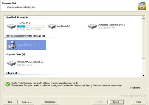 Comfy Photo Recovery是一款专业的数码相机照片恢复工具,它适用于所有类型的数码相机和内存卡,你可以使用读卡器直接从你的相机内存中读取数据。如果不小心删除珍贵的数码相片,将是一件很心痛的事情。但要恢复被删除的相片并不是一件什么困难的事情,借助Comfy Photo Recovery可以让你快速找回被删除的相片。