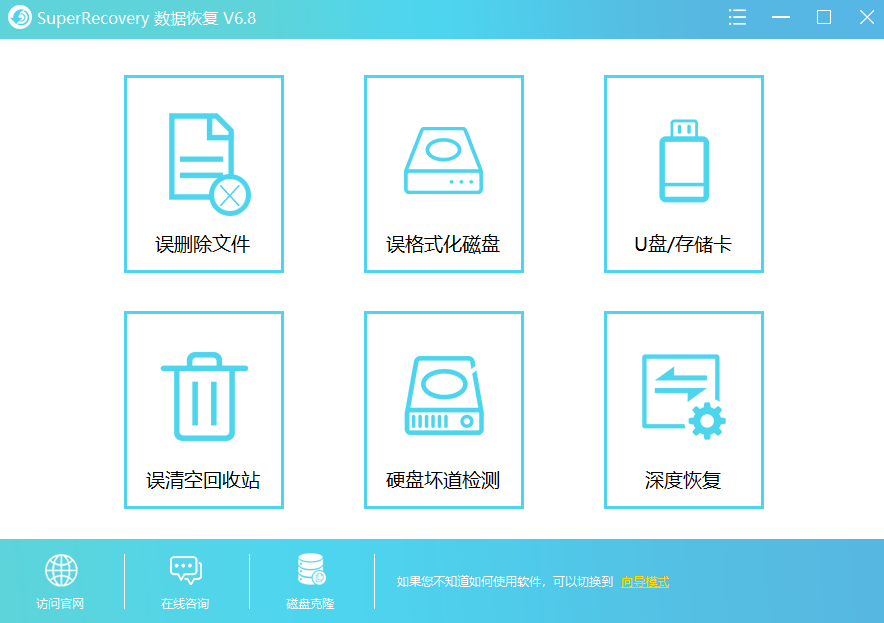超级硬盘数据恢复软件 [SuperRecovery]是一款专注各类场景的数据恢复、界面清爽、引导式操作的数据恢复工具。该数据恢复软件具备丢失的文件扫描恢复、支持多种设备、常见文件预览、分区格式化后恢复功能、硬盘原始数据深度恢复、磁盘克隆、硬盘坏道检测等。该软件支持从电脑硬盘、U盘、内存卡、CF卡、SD卡、相机、记忆棒等介质中恢复文件,支持FAT32、NTFS文件系统的存储设备丢失文件的恢复。 软件特点: 高效扫描:丢失文件的扫描算法已经过多年优化,极致高效; 深度恢复:针对存储设备的原始存储数据进行深度扫描恢复; 支持多系统:支持FAT32、NTFS文件系统的存储设备的恢复; 纯净软件:不含任何插件,不涉及任何广告。