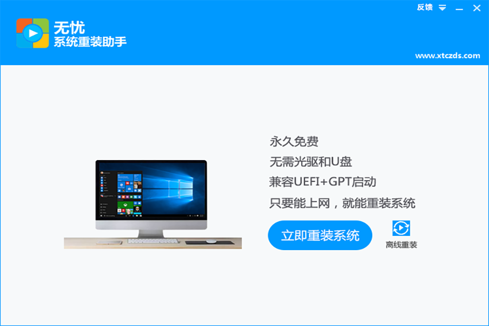 无忧系统重装助手是一款操作简单、易用的windows系统一键系统重装软件,只需简单几步,即可一键重装win10、win7、win8.1、winxp等系统,支持UEFI+GPT和传统Legacy引导模式,支持在线重装和离线模式一键ghost还原系统。