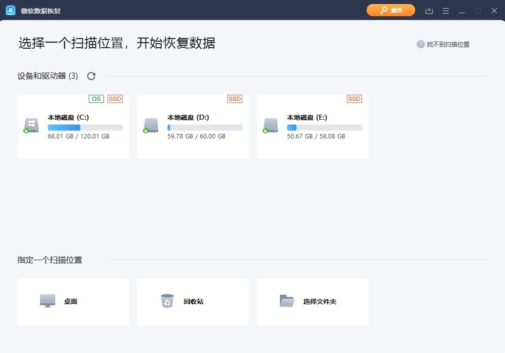傲软数据恢复是一款简单易上手的电脑端数据恢复软件。适用于误删除、格式化、分区丢失、重装系统、中毒、意外断电等多种数据丢失场景,能够帮您轻松从电脑、硬盘、U盘、内存卡、回收站、数码相机及其他设备恢复数据;且恢复文件类型无限制,支持恢复图片、文档、视频、音频、文件夹、压缩包、邮件及其他各种文件。快速扫描+深度扫描,恢复前预览,人性化的的操作界面,让您轻松找回所有丢失数据。