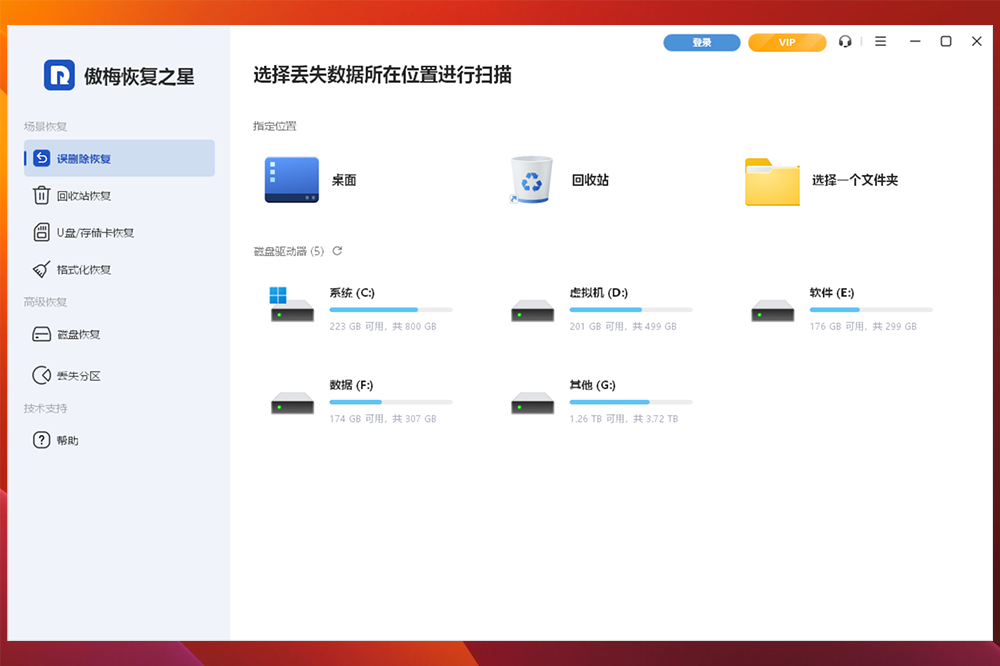 从各种数据丢失场景中找回数据,对意外删除、格式化、分区损坏、计算机病毒损坏、系统崩溃或其他未知原因而丢失的数据进行准确恢复。