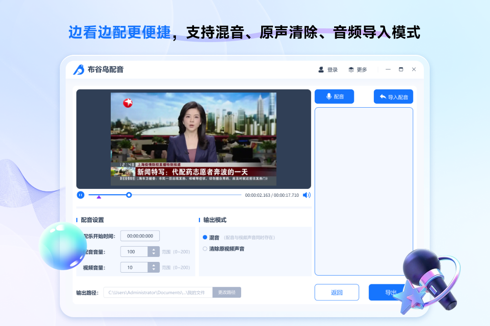 布谷鸟配音是一款多功能的文字转语音、配音软件,拥有上百种高度拟人的语音类型可供选择,并且能够根据标点符号实现沉浸式配音,适用于门店播报、电影配音、有声读物、视频字幕等多种场景.一款专业的配音软件。
