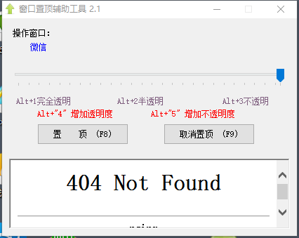 实现任意程序窗口“总在前”的小工具。有些软件自带“总在前”功能,例如有些播放器,可以让我们一边看电影,一边在屏幕上运行其他程序,而播放器窗口依然保持在屏幕前方,不会被遮挡。但并非所有程序都自带这个功能,这款小工具解决了这个问题,您可以将任何程序置顶,两件事情都不误,能为您的工作带来很大便利。