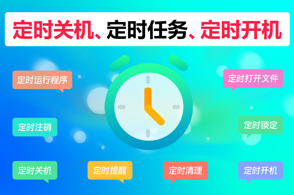 定时关机、定时开机、定时任务、定时提醒、支持多种定时任务,如定时关机、定时锁屏、定时休眠、定时重启、定时提醒、定时关闭显示器、定时注销、定时运行程序、定时打开文件、定时清理垃圾、定时清空回收站!芝麻定时任务操作简单,管理多种定时任务,非常方便!支持设置每日重复、定时、倒计时、间隔时间、开机执行任务。