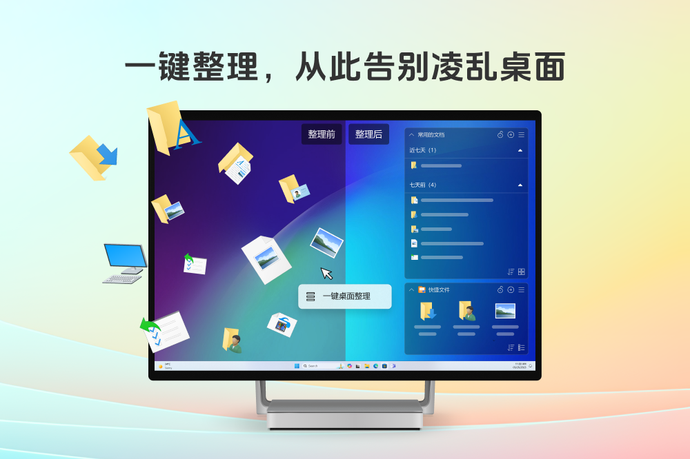 桌面整理,桌面文件整理,桌面美化,一键整理,快捷文件夹,桌面自动整理,纯净无广告;金舟桌面是一款专注桌面整理、简单易用的桌面管理软件,您可以通过桌面分区归类文件,告别桌面凌乱无序;还可以创建快捷文件夹分区,直接访问磁盘深处的文件,省去寻找的麻烦;一键桌面整理帮您按分类快速归纳文件,规整布局;自动整理让桌面出现新图标将实时自整理到对应分区,让您的桌面时刻保持干净整洁,给您带来优质高效的使用体验! 软件特点 1、一键整理,从此告别凌乱桌面 通过桌面分区将文件分类整理,使用右键菜单一键就能将散落在桌面上的文件归类。 2、磁盘映射,快捷访问磁盘深处文件 创建快捷文件夹分区,在桌面就能直接访问磁盘深处的文件,不占用C盘空间。 3、自动整理,按整理规则实时归类 开启自动整理后,桌面出现新图标将实时自整理到对应分区,让桌面时刻保持干净整洁。 4、极简纯净,无任何广告骚扰 专注桌面整理,拒绝任何形式的广告骚扰,不窥探您的隐私,更安全,更放心。