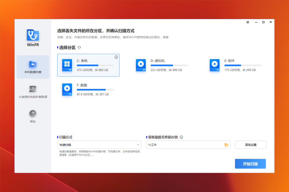 WinFR是傲梅科技为Windows File Recovery命令行数据恢复工具提供的图形界面,为了方便非专业用户也能免费、简单的使用Windows File Recovery而提供;数据恢复功能调用WinFR的命令行进行数据恢复,支持硬盘数据恢复、电脑数据恢复、U盘数据恢复等。