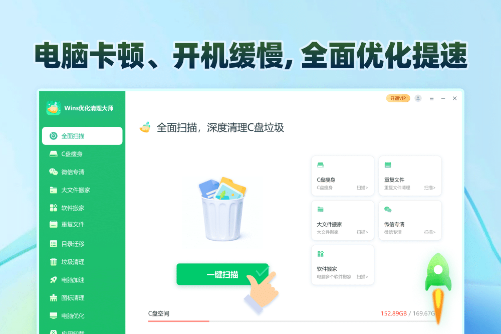 一款专为提升Windows系统性能而设计的全能型清理与优化工具。提供全面高效的系统清理、系统优化、软件专清、C盘瘦身、弹窗拦截、垃圾清理、隐私清理、碎片清理等多项功能,帮助电脑运行更加快速稳定。 主要功能: 系统全面扫描与深度清理:智能检测并清除系统垃圾(如回收站、临时文件、缓存、日志文件等)、聊天软件(如QQ、微信、钉钉)及浏览器上网产生的各种冗余数据。安全移除无效或错误的注册表项,并通过C盘瘦身功能释放宝贵空间,让电脑更加流畅高效。 系统优化:针对开机速度、内存占用、上网痕迹、电脑加速、用户隐私等场景提供全面优化方案,一键解决电脑卡顿,开机缓慢等电脑性能问题。 C盘专清:智能识别并清理C盘不常用的系统文件,支持特定软件的清理以解决存储占用问题,如微信专清、QQ专清、软件专清等,轻松C盘瘦身,一键解决C盘空间不足。 垃圾清理:一键清除系统垃圾、注册表残留、软件冗余文件及恶意程序,深度净化电脑,释放更多磁盘空间。 电脑加速:关闭不必要的后台进程和服务,减少资源占用,提升系统整体性能。