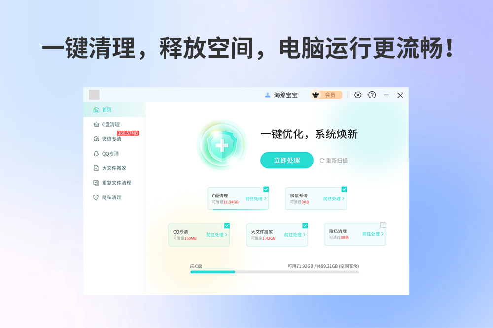 365C盘清理专家-简单高效无广告的优秀产品,无时无刻都在悉心为您清理电脑垃圾,并不断迭代进化清理能力。它包含的各种清理功能,让您随时可以轻松释放电脑空间,提升电脑速度:【智能扫描】:智能的全面扫描,一键检出垃圾文件、隐私痕迹、弹窗软件等,让你掌握电脑状况,让电脑运行更轻快。[C盘瘦 身】:一键释放C盘空间,清理各类垃圾文件,将大文件、软件智能迁移至其他磁盘,给C盘轻松释放50GB+空间。【碎片清理】:清理文件碎片,让您 的电脑运行更加流畅稳定。[垃圾清理】:深度扫描系统和软件运行中产生的各种垃圾,清理无用缓存、历史痕迹、临时文件等隐藏垃圾,彻底还您一 个干净的电脑。【隐私清理】:清理您使用电脑和上网浏览的历史痕迹,清除购物、账号、影音播放等个人敏感数据,保护您的个人隐私安全。【弹窗 拦截】:智能拦截各种软件弹窗,远离广告骚扰,净化您的电脑环境。【软件卸载】:卸载不常用软件,清理卸载残留。智能C盘清理-“简单、专业、智 能”,是您电脑的贴心助手,帮助您轻松应对各种空间不足和电脑卡慢,获得畅快的电脑体验。快来试试吧,让您的电脑焕发全新的活力!