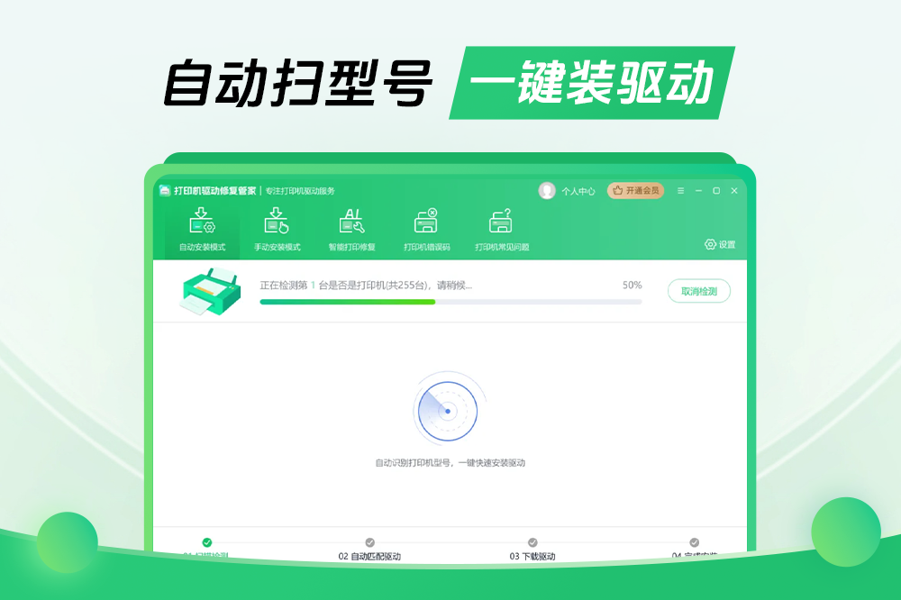 打印机驱动修复专家专门为打印机驱动问题而设计的系统级工具软件,可自动识别打印机的品牌和型号,快速安装驱动,省去手动下载安装繁琐步骤;可一键检测修复打印机各种异常问题,定制专属解决方案,使打印机更加流畅。海量驱动库自动更新,确保用户可以获取最新驱动,提升打印效率和稳定性。