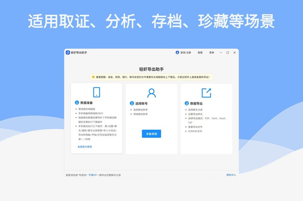 轻虾导出助手是一款功能全面、操作简便的微信聊天记录导出工具。软件支持将微信聊天记录数据导出为多种通用格式,如PDF、Excel、CSV、TXT等,满足用户在不同场景下的使用需求。无论是数据分析、报告生成还是简单备份,都能找到合适的输出格式。轻虾导出助手在处理用户数据时严格遵守本地化原则,所有数据处理均在用户设备上完成,不会上传至任何服务器,有效保障用户隐私和数据安全。