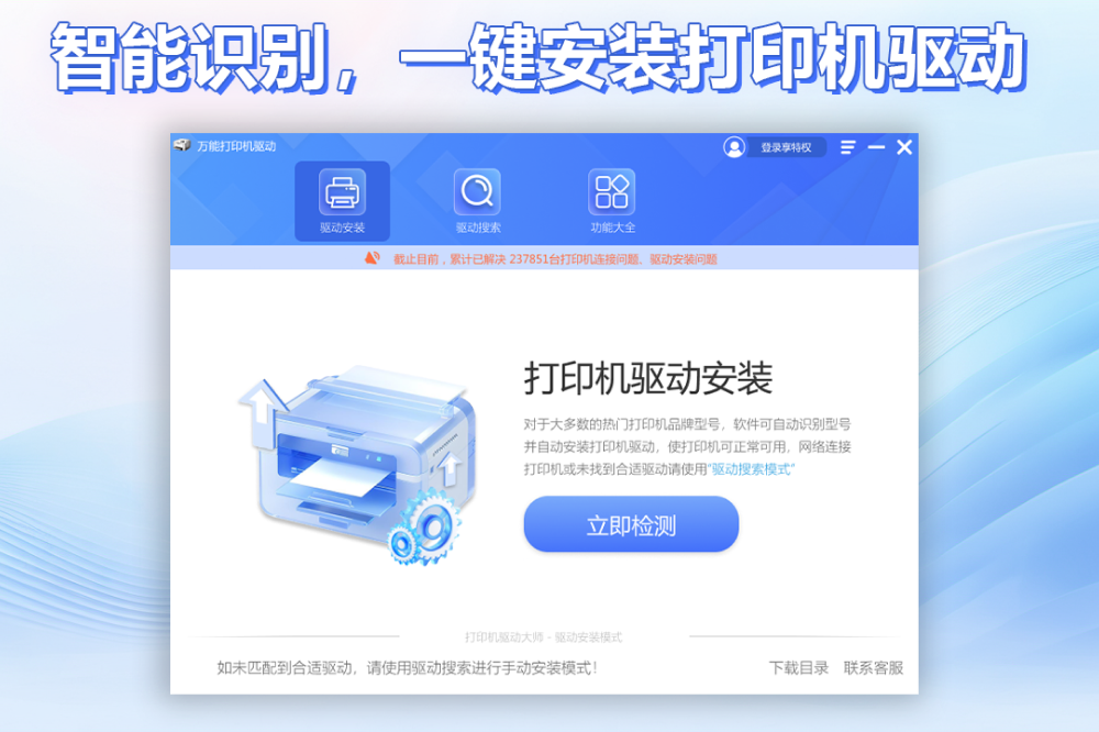 打印机驱动下载,自动识别打印机型号及操作系统,精准匹配官方驱动,支持一键安装、更新与故障修复。覆盖主流品牌及系统,操作极简,有效解决打印机驱动缺失、不兼容等问题,让家庭及办公打印更高效顺畅。