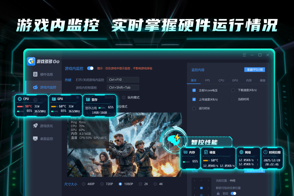 硬件监控,性能监控,桌面监控,解决游戏卡顿,性能优化,游戏畅玩配置,游戏滤镜,运行监控,游戏多多是一款能适配全类型玩家,精准解决卡顿、画质差、定位硬件隐患等痛点的软件,以智能优化与实用工具整合,提供流畅沉浸的全流程游戏体验。