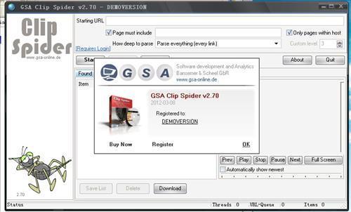 通过GSA Clip Spider您可以自动的从网络服务器下载电影片段,并且通过这个软件观看这些影像。