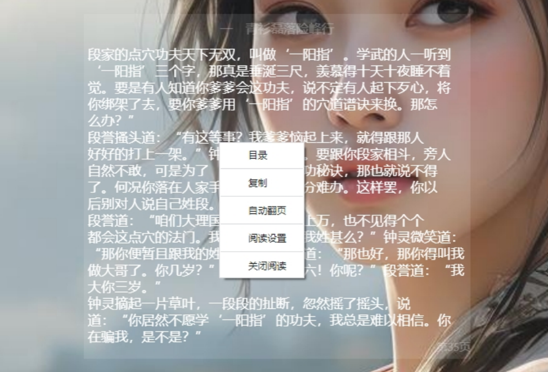 NovelReader是一款隐蔽式阅读工具,小说阅读器、视频摸鱼、视频盒子、视频解析。支持调整文字大小、颜色、背景透明度、窗口缩放移动、自定义快捷键、老板键、简繁体翻译、鼠标翻页、快捷键翻页、定时自动翻页,图书导入、支持epub、txt、pdf、docx、mobi等20种文档格式。随时随地阅读小说,上班摸鱼的最佳工具。隐蔽阅读器让你轻松划水,享受阅读乐趣,让阅读体验更愉悦。