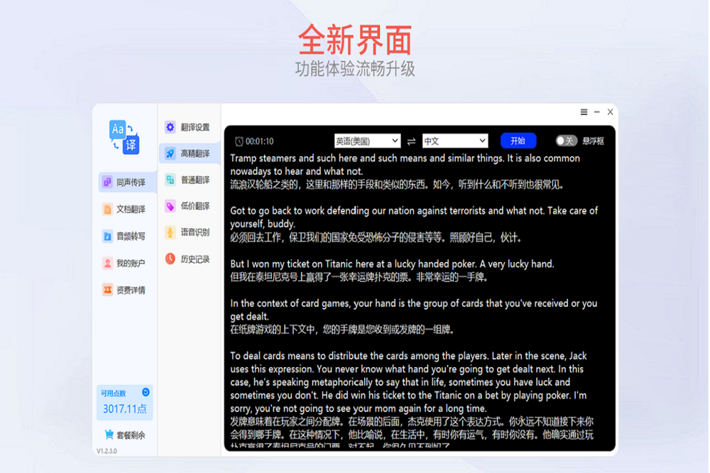 高精翻译:可以实时翻译在线视频、在线视频会议、在线网课、线下课程。