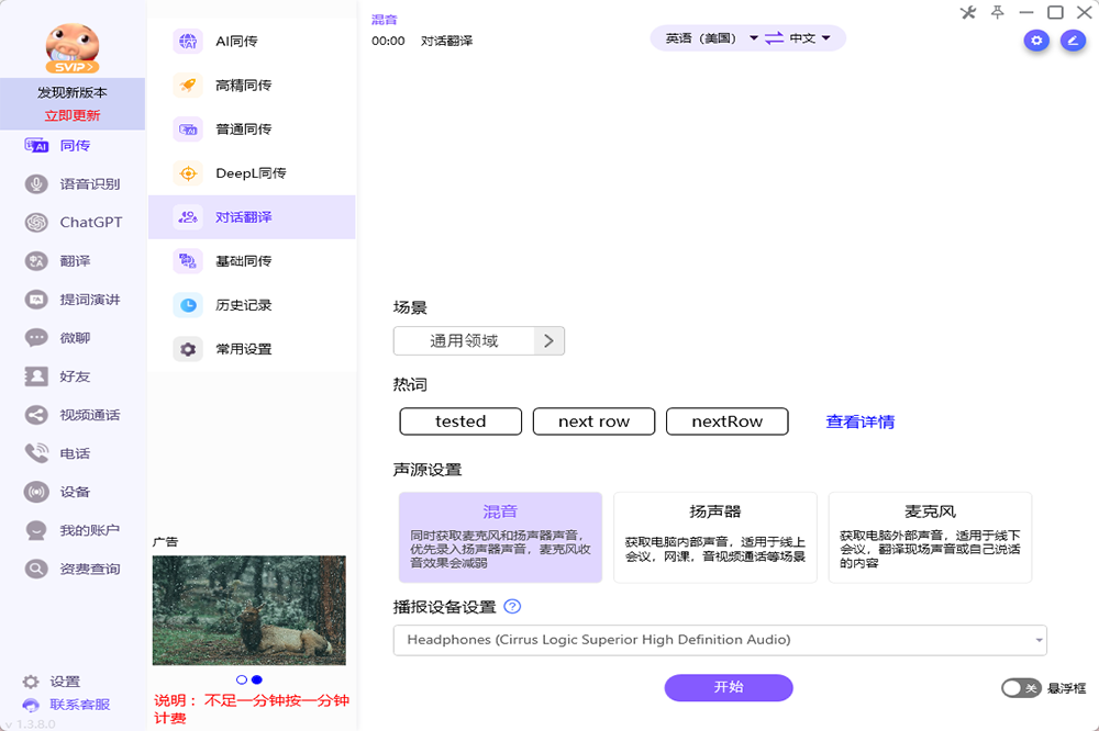 本方也可以直接讲外语,则不会被翻译,对方直接听到外语。