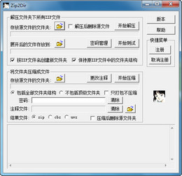 电子版漫画整理工具。能够批量压缩/解压/测试/注释ZIP文件,支持右健菜单,具有密码记忆功能。 动机: 在整理收藏的电子版漫画的时候,希望能够有这样的软件: 1、能够自动将指定目录下的所有ZIP、EXE文件全部展开,并可以决定是否按照文件名创建子目录,及是否保持原ZIP包中的目录结构。 2、能够自动测试指定目录下的所有ZIP、EXE文件是否完好。这一点对常从网上下载的人具有重要意义。 3、解压、测试时能够记忆密码,相同的密码输一次就够了。 4、能够一次将指定目录下的所有子目录全部打包成ZIP文件,文件名就用目录名,并且可以指定密码和注释。 5、可以批量设置/清除指定目录及其子目录中所有ZIP文件的注释。在这样的需求越来越强烈的情况下,产生了这个工具。