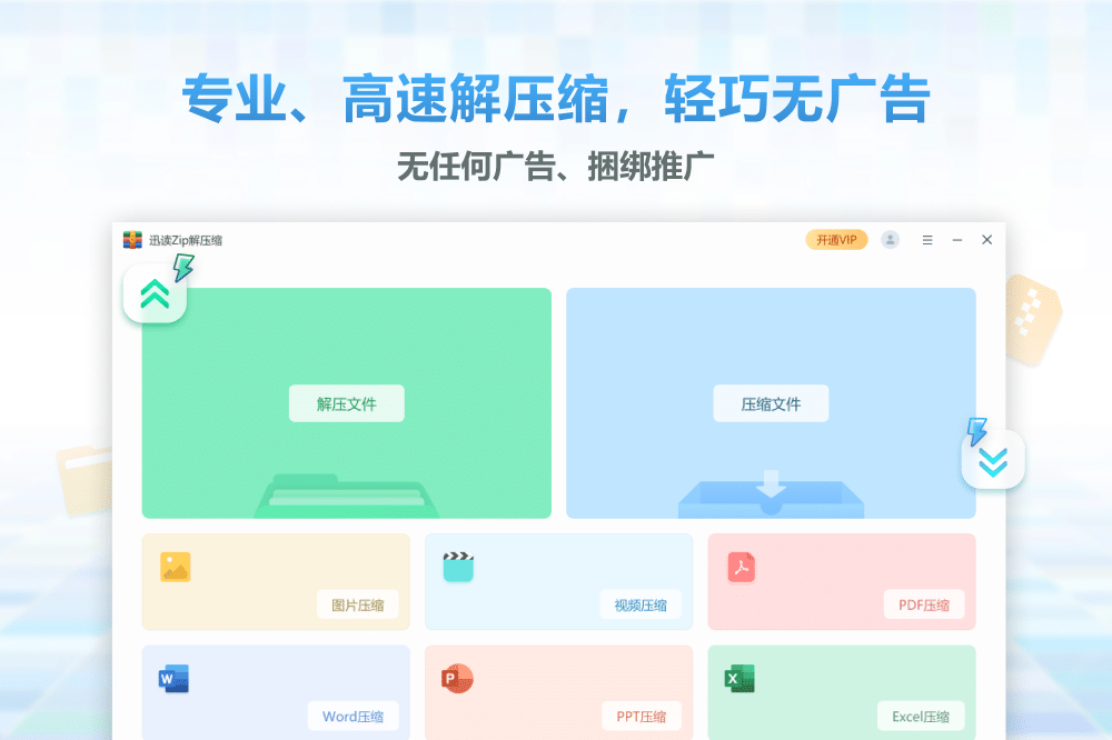 官方正版无广告,压缩更高效。新一代电脑装机必备解压缩工具,高效轻巧,简洁好用,支持格式全! 1. 智能高速解压/压缩:支持ZIP、RAR、7Z、ISO等40+格式,采用强大引擎与专业算法,秒速无损解压缩,1G文件仅需3秒! 2. 提供强大加密功能,确保压缩文件安全。 3. 无需解压即可预览压缩包内文件,管理更直观。 4. 多模式压缩:支持ZIP、7Z、TAR等格式输出,可自定义压缩级别,实现速度与压缩率最佳平衡。 5. 图片压缩,支持智能压缩、无损压缩、指定清晰度或大小压缩。 6. 视频压缩,高清压缩,速度快,体积小。 7. 快速压缩PDF,保证文档质量同时减小体积。 8. 支持Word、Excel、PPT压缩,灵活设置压缩方式,轻松应对办公需求。 9、纯净无广告,无捆绑推广,拖拽文件即可操作,方便快捷。