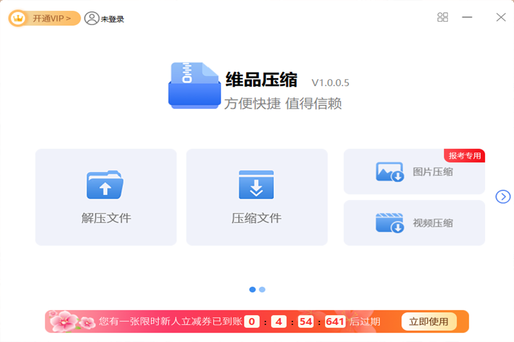 维品压缩软件是新一代文件压缩、解压工具,支持无损压缩。不仅功能全面,能解压多种不同格式的文件,还支持压缩图片、文档、PDF、视频、音频等各种文件夹,并且为您的文件加密,贴心保护你的隐私,给您带来高效便捷的使用体验。