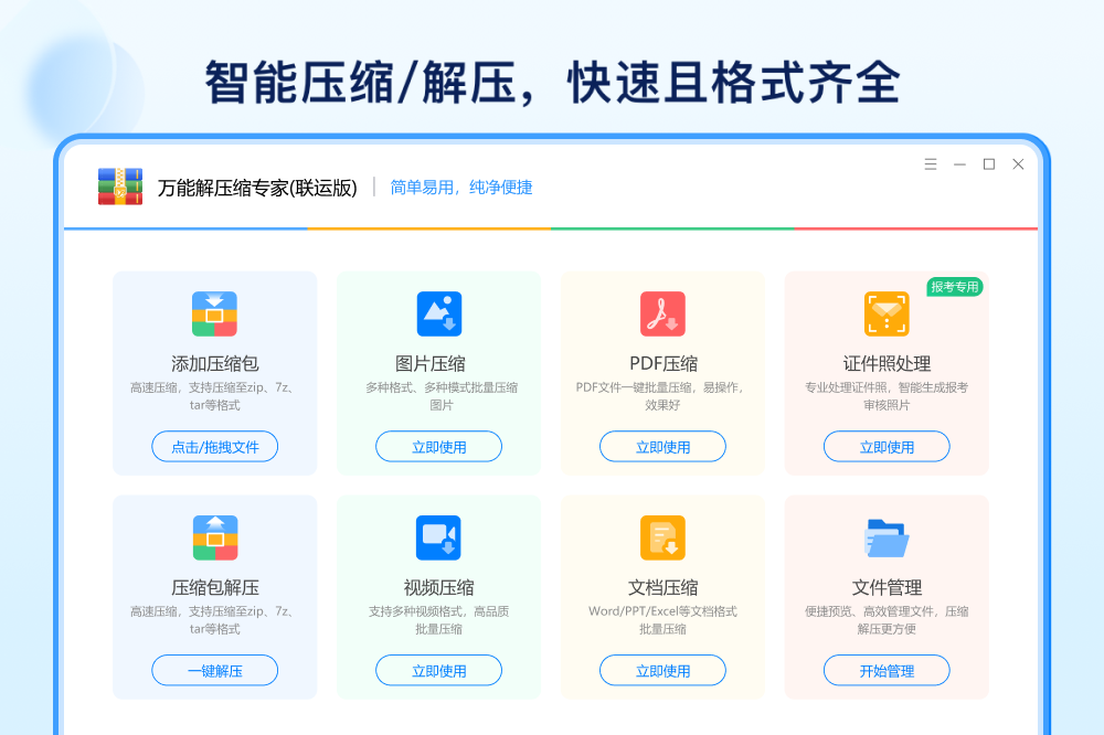 zip,rar,7z文件解压/压缩,纯净安全无广告,图片压缩,视频压缩,音频压缩,GIF压缩,PDF压缩,Word压缩,PPT压缩,Excel压缩;万能解压缩专家是全球领先的zip,rar,7z文件压缩、加密、实用软件,纯净便捷,安全无广告,节省时间和空间,快速压缩和解压缩文件,支持打开的压缩文件的格式有:rar , zip , 7z, bz2 ,bzip2, tab2, gz, gzip, tgz, tar, xz, txz、tbz2、xpi、zipx、tgz、tpz、txz、swm、lha、lzma86、img、bz、split、tbz、taz、deb、war、chm;