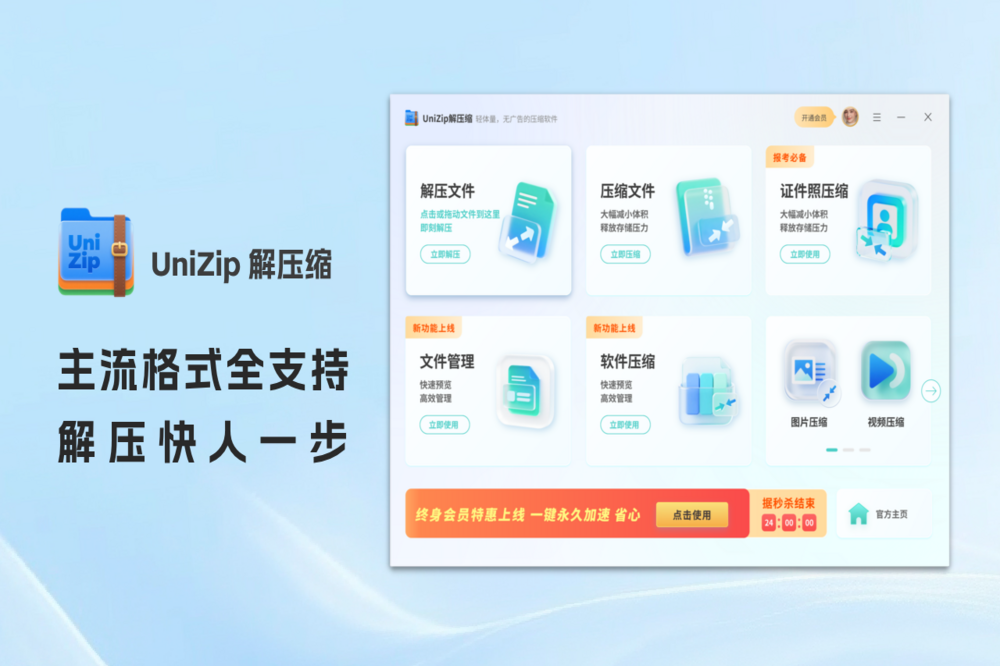 UniZip解压缩 是一款功能全面、性能强劲的压缩软件,专为高效办公与日常使用打造。
