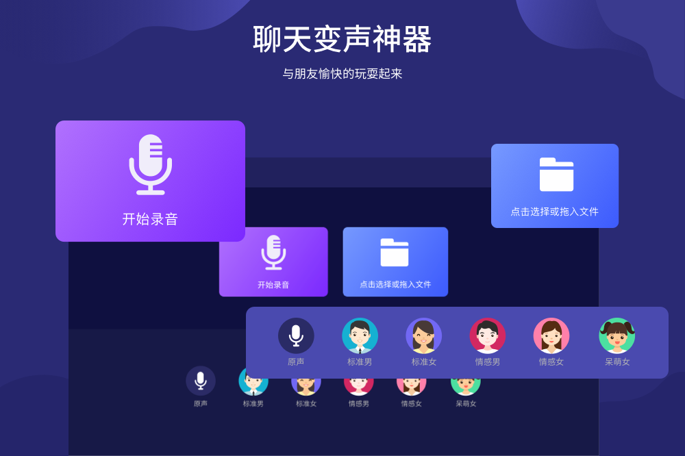 变声器是一款可以将人声转换成其他音效的软件。当您和您的朋友聊天的时候,通过变声器软件即可将您的本人的声音转换成如标准男/女声,呆萌男/女或者情感女等一些搞怪的声音,可以使朋友间的聊天更加生动和有趣,赶紧下载体验下吧!