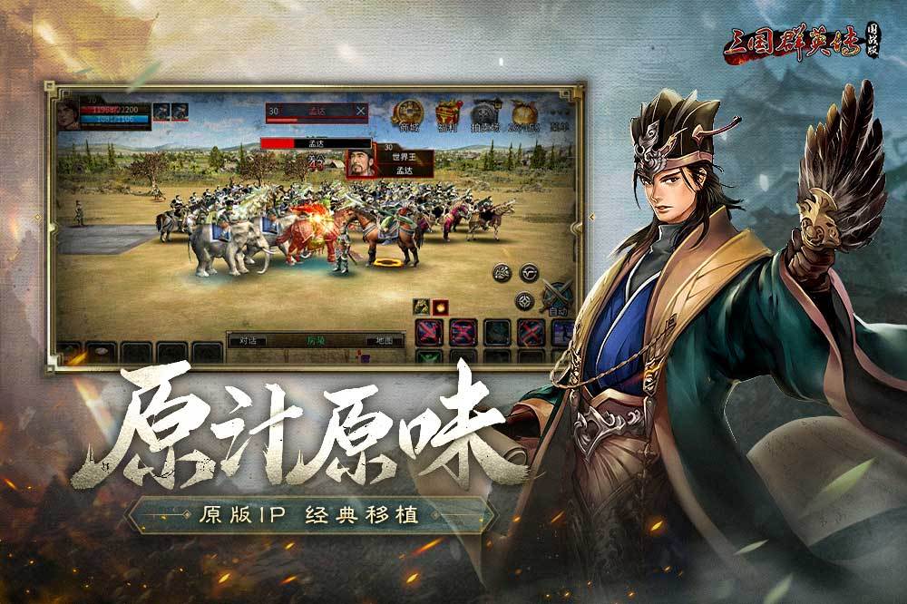 《三国群英传:国战版》=即《三国群英传M》国服,是一款以三国题材为背景的角色扮演类游戏。游戏由经典IP《三国群英传》系列开发商宇峻奥汀倾情打造,延续了经典的横向卷轴画面,高度还原了各类历史事件,并实现了在移动端的万人同屏国战。