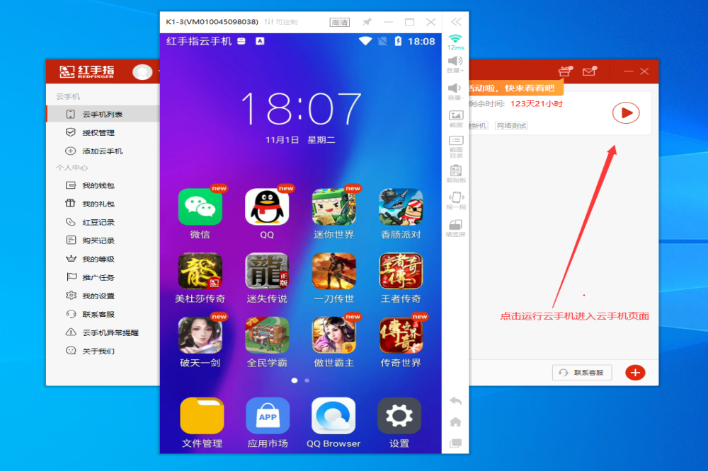 云端托管使用红手指云手机登录你的游戏 [1],完成自动战斗操作后 ,手机电脑即使关机,让你的游戏角色24小时在线 。红手指--你的另一台“云手机 ”。
