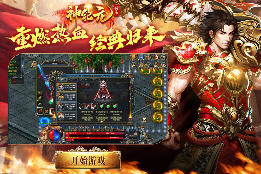 《神纪元》是一款致敬传奇经典的MMORPG页游,沿用端游经典传奇的三职业设定,地图与怪物设计1:1复刻,细节考究,最大程度还原经典,为千万玩家打造真正的传奇。