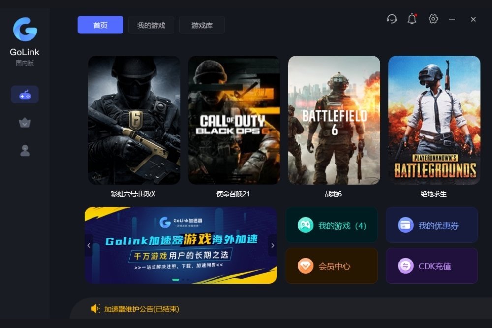 GoLink加速器是一款专为游戏玩家设计的专业网络优化工具,新用户下载免费50小时,可随时暂停,有效时长不过期。GoLink自研AI智能引擎智能路由技术,有效解决各类网游、主机游戏中的延迟高、掉线、丢包以及登录困难等问题,提供稳定流畅的联机体验。