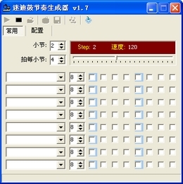 迷迪鼓是一款鼓节奏发生器,支持自定义鼓点节奏,能够保存和读取鼓节奏配置文件,也能够将鼓节奏导出为MIDI格式文件。