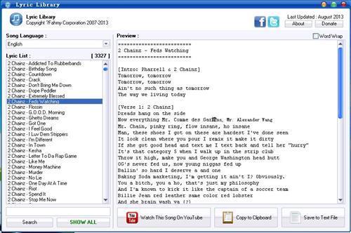 Lyric Library是实用的歌词离线管理和搜索软件,软件目前收录了超过3000首英、日、韩等语系的歌词,支持一键复制。如果你希望添加自己的歌词库,只需在软件中对应的文件夹创建文件文本文件就可以了。