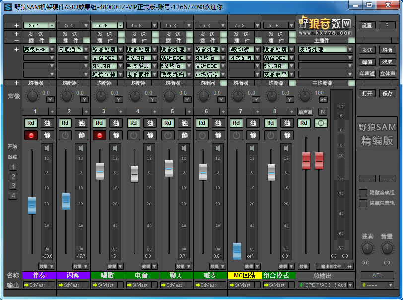 sam机架精编版,是一款优秀专业的,网络主播现场K歌/喊麦等,声卡辅助音效增强软件.由启肯网络科技调取于,samplitudePro12的核心文件改编而成,精简去除无用的其他功能,使其体积更小,界面更人性化,稳定性更强.同时支持一键无间断效果秒切,实现一键极速安装,全自动加载三组默认机架效果,完美兼容目前所有的内置/外置独立声卡.调音台和主窗口可一键隐藏和呼出.可自定义捆绑声卡型号和ASIO通道。