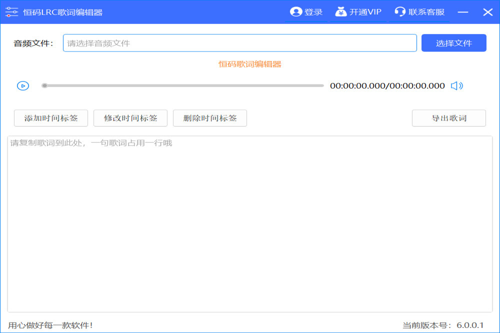 恒码LRC歌词编辑器软件制作歌词简单方便,全部制作过程只需要跟随歌曲插入具体时间即可。恒码LRC歌词编辑人性化的用户体验,清晰的步骤引导,内置播放器实现听歌、制作、修改、预览一体化。通过恒码LRC歌词制作器自己动手制作LRC歌词拥有精准的时间匹配度。可用于各种音乐播放器设备。同时支持导出TXT/SRT等多种字幕格式。