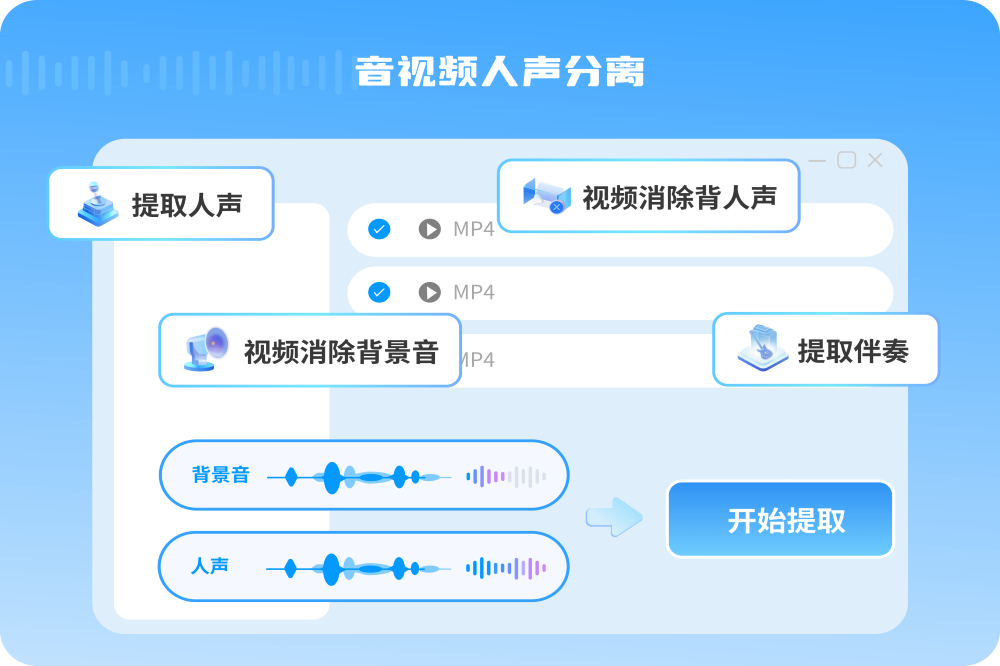 灵迅人声分离软件,旨在帮助用户轻松对音视频进行人声分离操作。以下是该软件主要功能介绍: 1)人声分离:音频分离,人声提取,消除人声,伴奏分离,视频消除人声,视频人声分离,音乐去人声。 2)提取人声:人声分离,人声音乐分离,音频分离人声和音乐,音频分离,背景音乐和人声分离。 3)提取伴奏:伴奏提取,背景音乐提取,歌曲去人声,消除人声,人声伴奏分离,消除人声保留背景音乐。 4)视频消除人声:简鹿人声分离支持给视频消除人声方便二次配音,视频人声分离,视频消除人声,视频去人声。 5)视频消除背景音(视频降噪):消除视频杂音保留清晰人声,视频消音,视频去噪音,视频背景音乐消除。6)提取鼓声/钢琴声/贝斯声:软件支持提取音视中的乐器声。