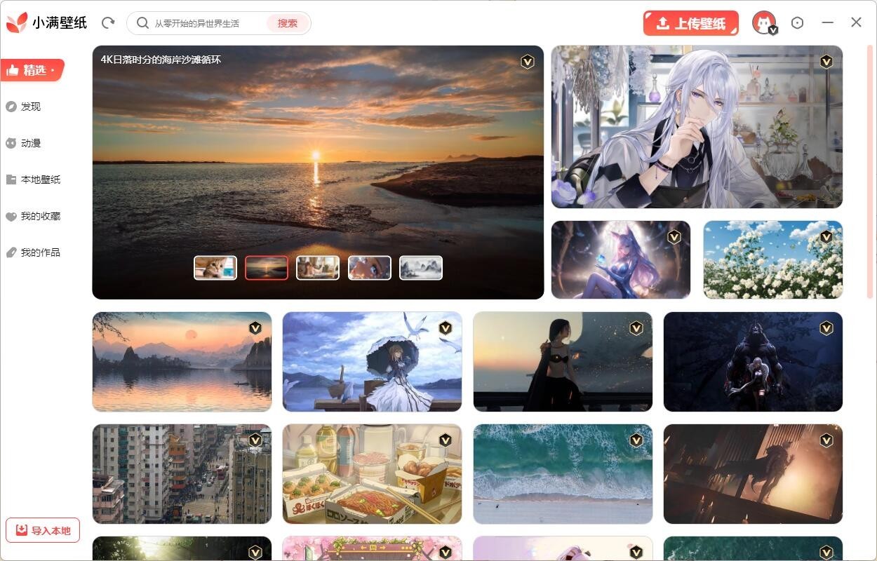 小满壁纸是一款电脑桌面壁纸软件。拥有高清的视频动态壁纸、互动趣味的网页壁纸、精美的图片静态壁纸。壁纸风格多样,有风景、动物、游戏、动漫、科幻等,满足用户设置自己的个性化桌面。