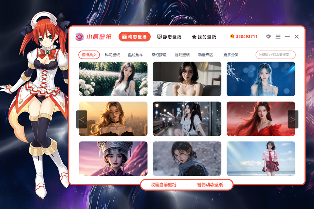 小启壁纸支持动态壁纸和静态壁纸2种方式,为你提供2K、4K、8K高清,海量无损在线壁纸。内置几十个不同类型风格,其中包括,游戏壁纸,美女模特,影视剧照,宠物动物,美丽风景,炫酷时尚,明星时尚,汽车天下,劲爆体育,军事天地,动漫卡通,爱情美图等。全新技术通过硬件加速引擎,无卡顿顺畅播放动态视频壁纸,通过设置时间,可随机播放收藏列表里的不同壁纸,具备了一键更换屏保,等实用的桌面功能。桌面右上角壁纸小挂件可在选项设置里更换不同的图案。